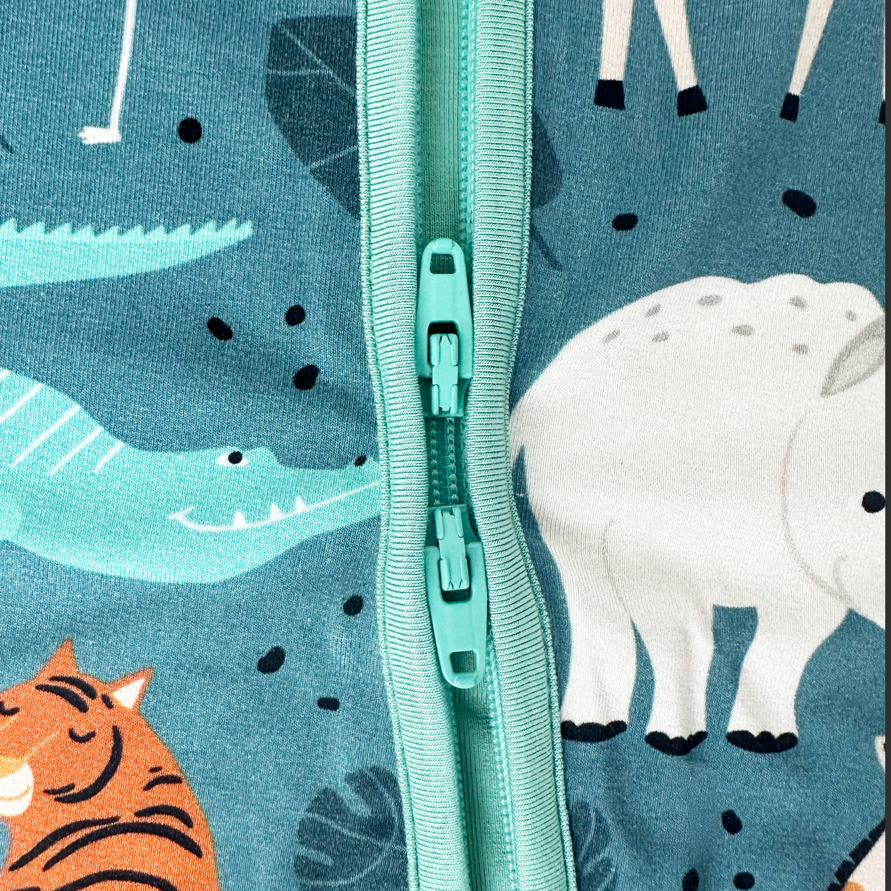 Your little explorer can sleep sweetly or play wildly in this playful zippy featuring lions, tigers, giraffes, and more safari friends.